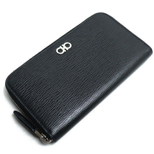 Salvatore Ferragamo サルヴァトーレフェラガモ ガンチーニ 長財布 ラウンドファスナー ブラック レッド 22C843 レディース【中古】【美品】