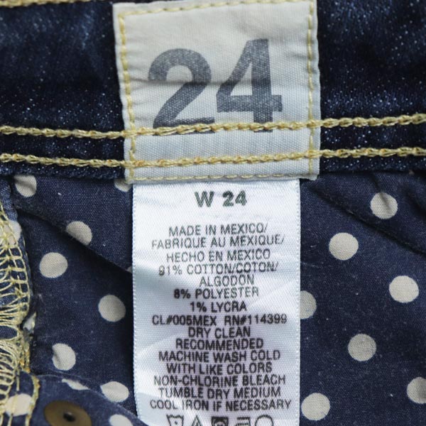 表記サイズ:W24 [平置き] 総丈:約98cm 股上:約17cm 股下:約78cm ウエスト:約32cm ワタリ幅:約21cm 裾幅:約22cm |