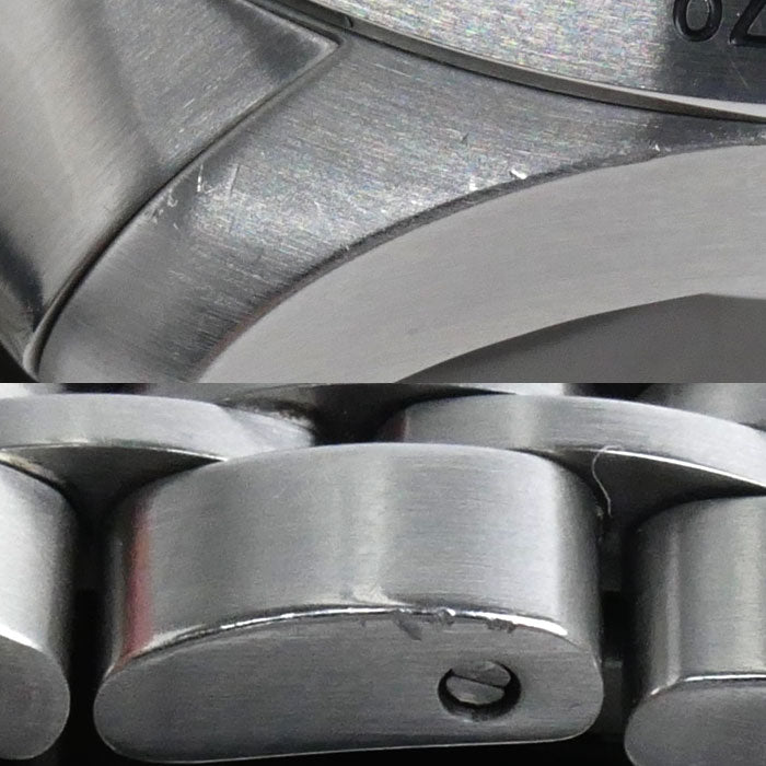 ABランク 小キズなど有りますが程度の良い中古品 ガラスにキズは見受けられませんがベゼルに小キズ・スレ、ケース・ベルトに薄い小キズ・スレあり。 また展示品の為、色やけ・多少の傷みや小キズ等ある場合がございますので予めご了承下さいませ。 |