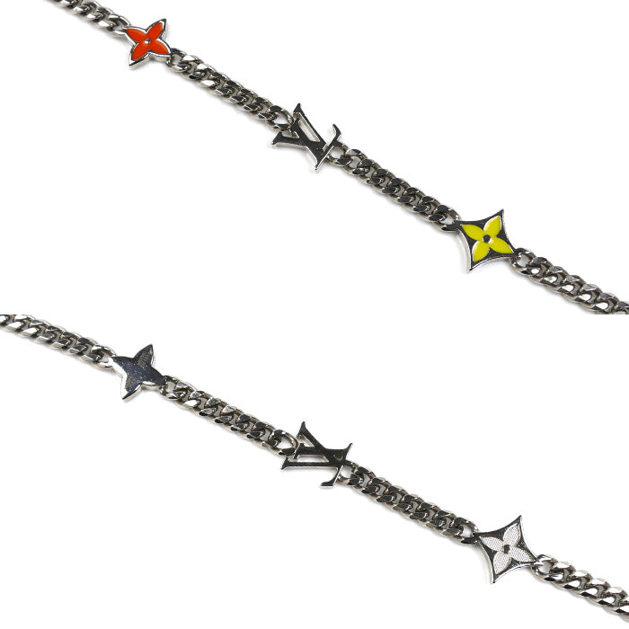 チェーン幅:約4.1mm チェーン厚み:約19mm チェーン長さ:約65cm ロゴモチーフ幅:約9mm イエロー幅:約12.3mm オレンジ幅:約11mm |